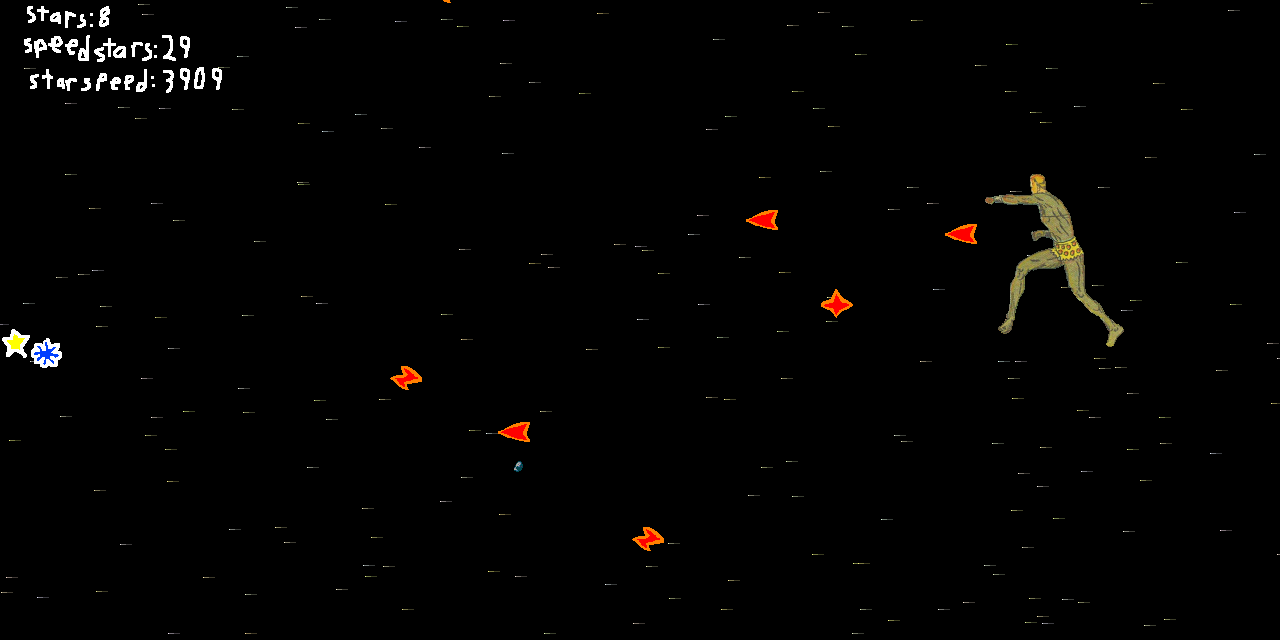 While Starspeed Speedstar is a silly and intentionally random game, it does have some gameplay depth that might not be immediately obvious. The download includes a more detailed guide to the game. I recommend playing without the guide first, or at least starting without reading the heaviest spoiler section at the end of the guide.